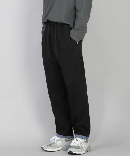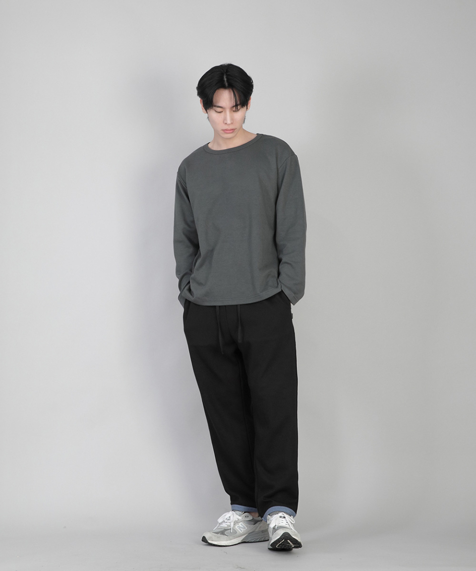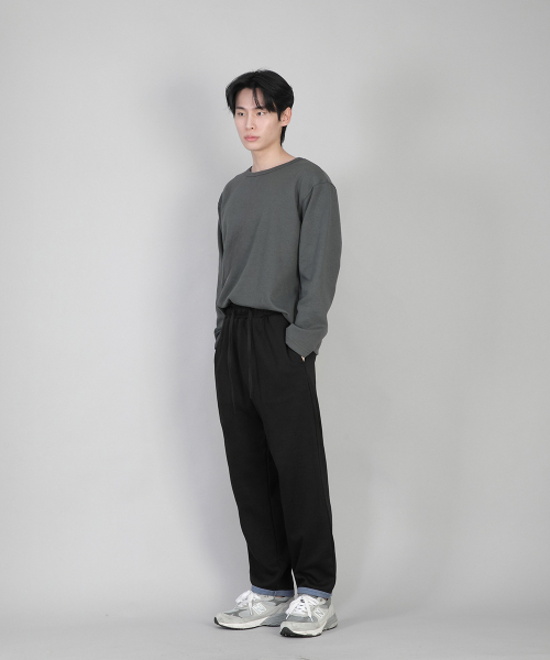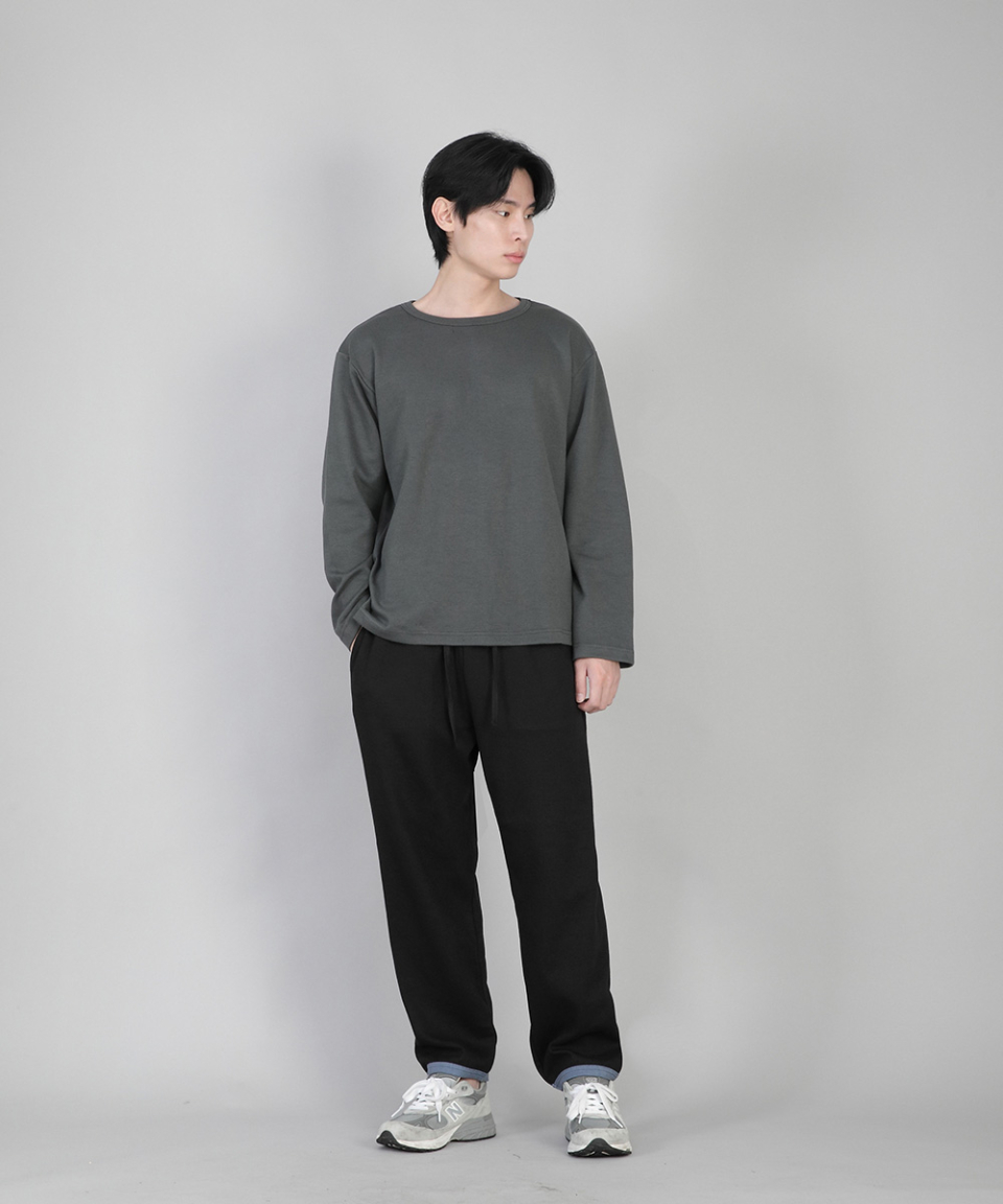 - 기모안감, 부드러운 촉감, 바지 밑단에 립원단으로 마감 포인트