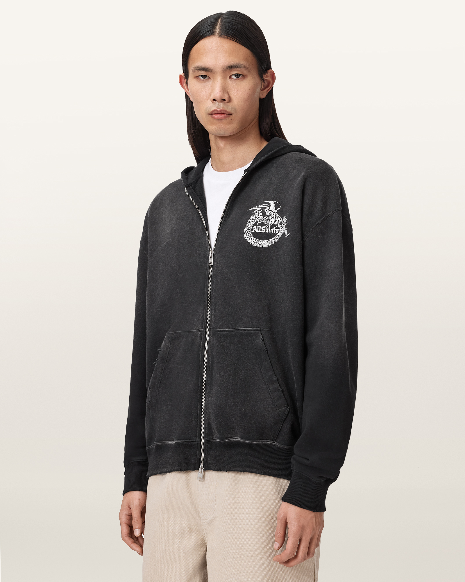 자연스럽게 바랜 워싱감과 의도적인 디스트로이드 디테일로 빈티지 무드를 완성한 아이템입니다. 여기에 올세인츠만의 핸드 드로잉 그래픽 로고를 더해 편안하면서도 스타일에 확실한 개성을 더해줍니다.