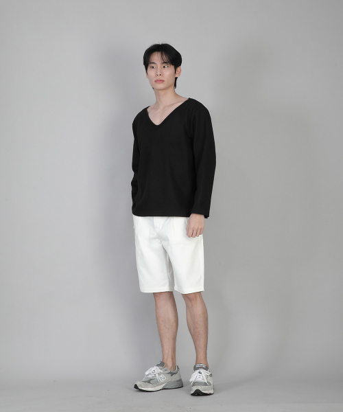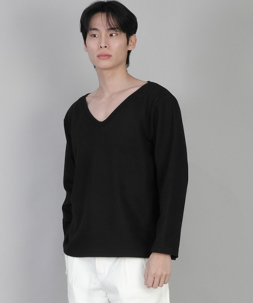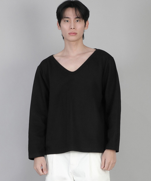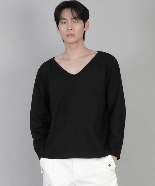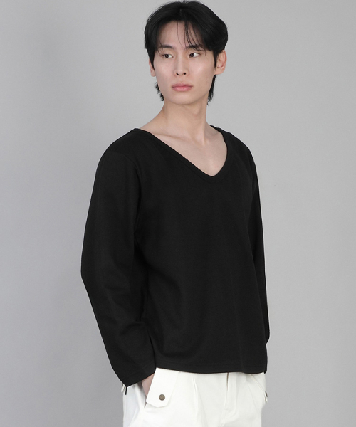 무지 BIG V넥 긴팔티 BIGV-879 블랙