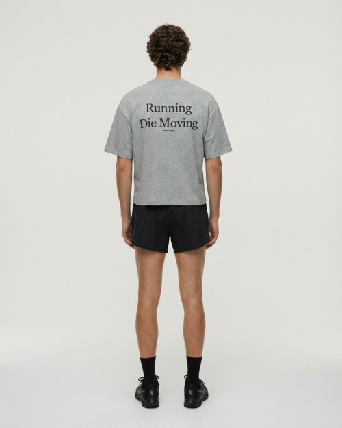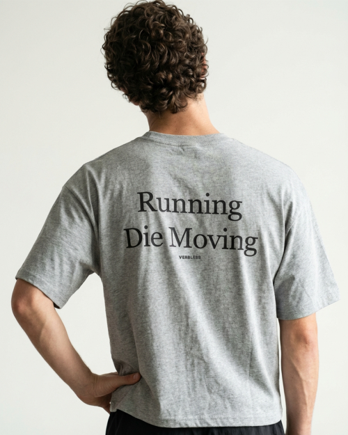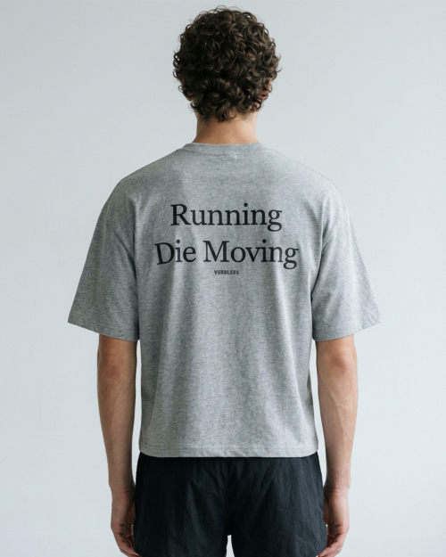 RUNNING DIE MOVING은 움직임 자체를 메시지로 담은 VERBLESS의 크롭 티셔츠입니다.