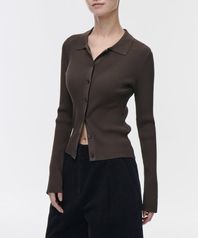 우먼즈 리브드 슬림 칼라드 가디건 [브라운]