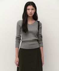 우먼즈 와이드 리브드 슬림 브이 넥 니트 [미디엄 그레이]