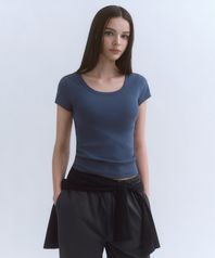 우먼즈 슬림 스쿱 넥 캡 슬리브 티셔츠 [미드나잇 블루]