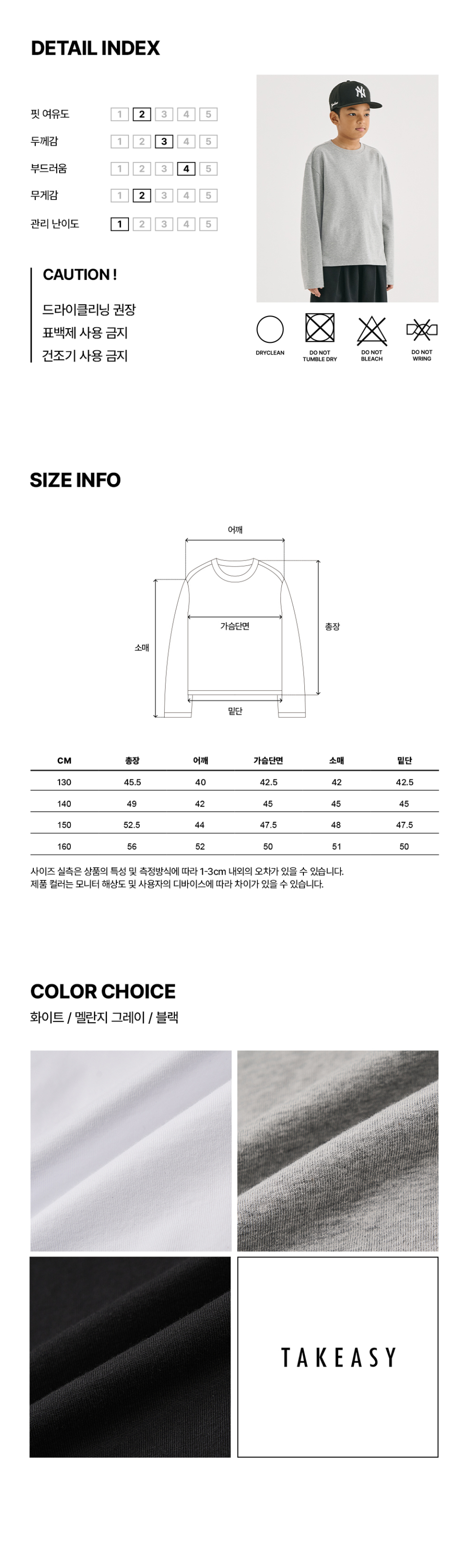 테이크이지 키즈(TAKEASY KIDS)는 동심을 시간이 지나도 변하지 않을 가치로 표현하는 브랜드입니다. 미니멀하면서도 일상에서 편안하게 착용할 수 있는 키즈 스타일을 제안합니다.