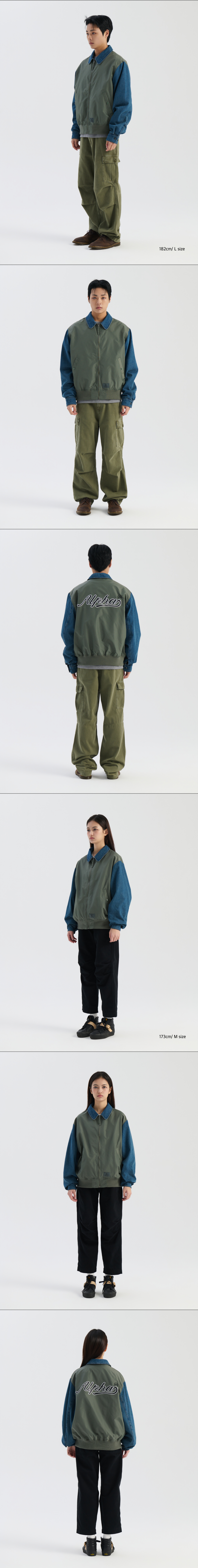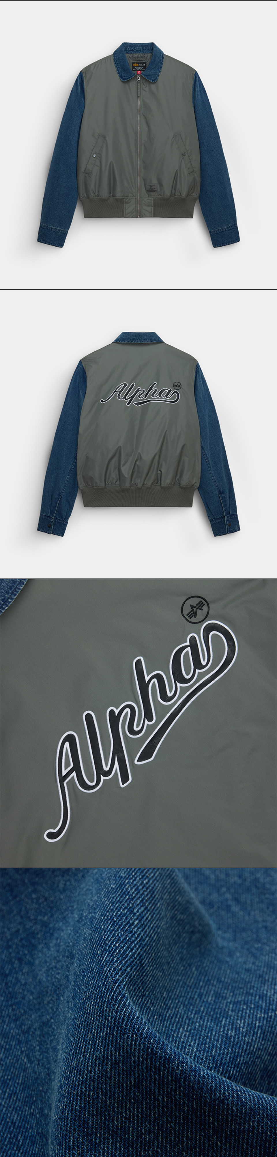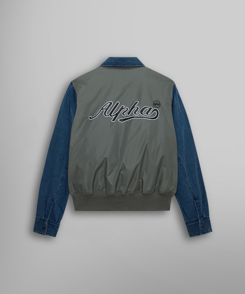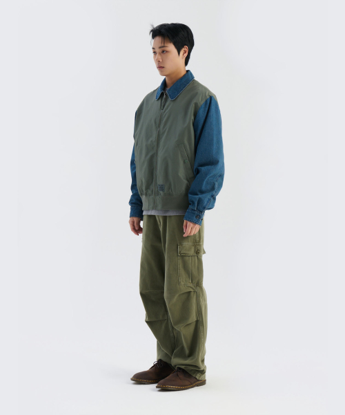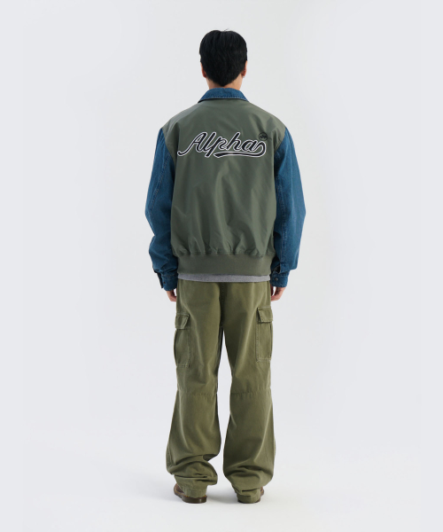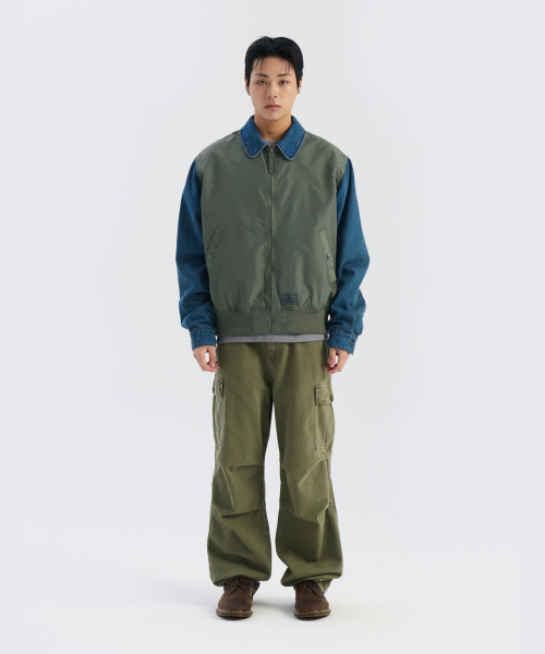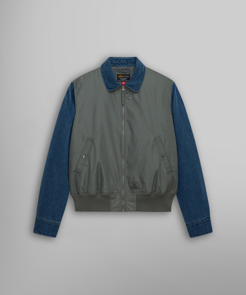 데님 릴랙스드 믹스드 미디어 플라이트 자켓 필드 그레이