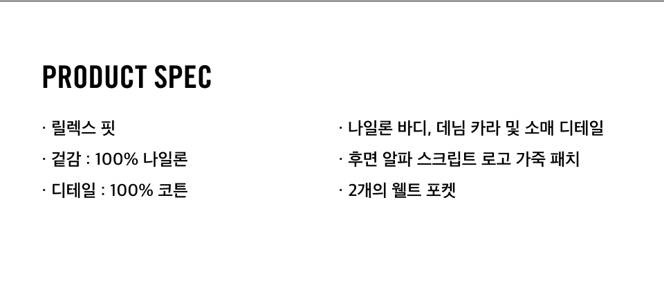 알파 인더스트리(ALPHA INDUSTRIES)는 1959년 테네시주 녹스빌의 한 공장에서 시작한 브랜드입니다. 미국의 육·해·공군 및 해병대원을 보호하는 플라이트 재킷이나 코트를 제공하는 공식 공급업체(오피셜 서플라이어)로 엄격한 밀스펙(군대에서 정해 놓은 기준)을 엄수하며 생산합니다. 특히 알파 인더스트리는 다른 업체와 달리 군수품과 일반인에게 판매되는 재킷에 등급의 차이가 없습니다. 알파 인더스트리의 제품은 미국은 물론 전 세계 각지의 미군 기지에서 활동하는 군인이나 파일럿, 지상 요원이 입는 재킷과 같은 그레이드의 아이템입니다.