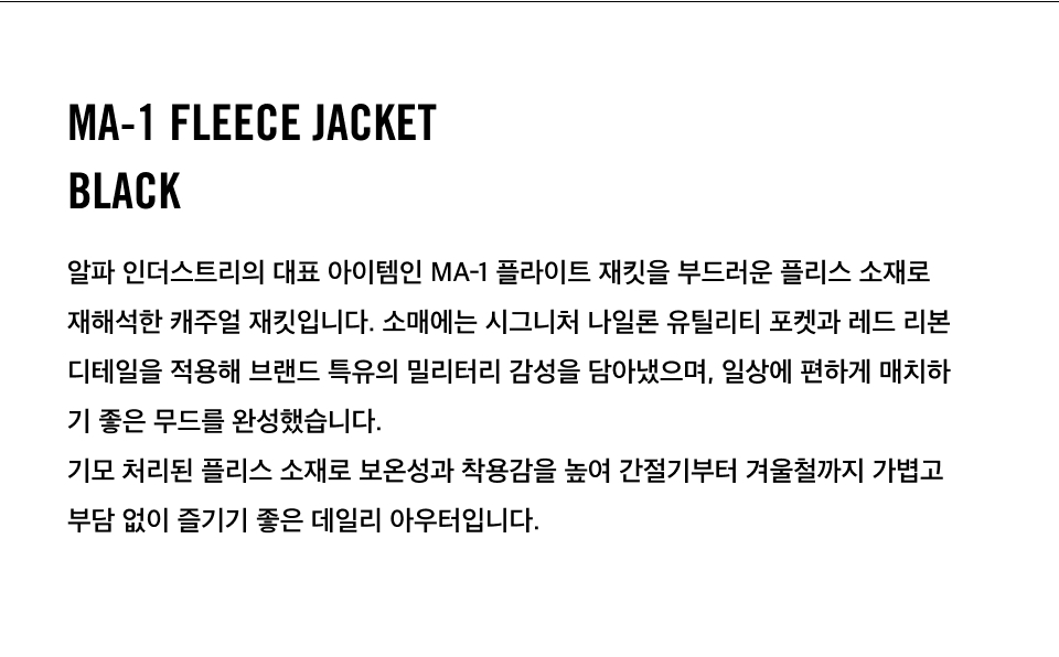 알파 인더스트리(ALPHA INDUSTRIES)는 1959년 테네시주 녹스빌의 한 공장에서 시작한 브랜드입니다. 미국의 육·해·공군 및 해병대원을 보호하는 플라이트 재킷이나 코트를 제공하는 공식 공급업체(오피셜 서플라이어)로 엄격한 밀스펙(군대에서 정해 놓은 기준)을 엄수하며 생산합니다. 특히 알파 인더스트리는 다른 업체와 달리 군수품과 일반인에게 판매되는 재킷에 등급의 차이가 없습니다. 알파 인더스트리의 제품은 미국은 물론 전 세계 각지의 미군 기지에서 활동하는 군인이나 파일럿, 지상 요원이 입는 재킷과 같은 그레이드의 아이템입니다.