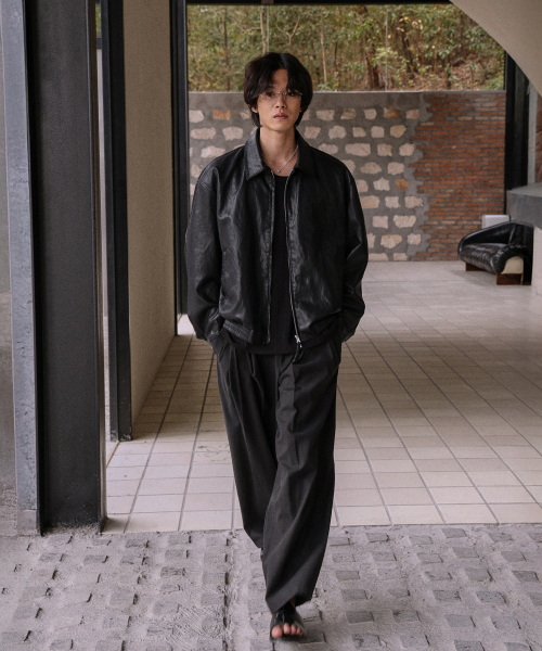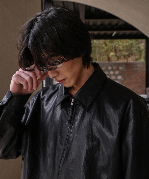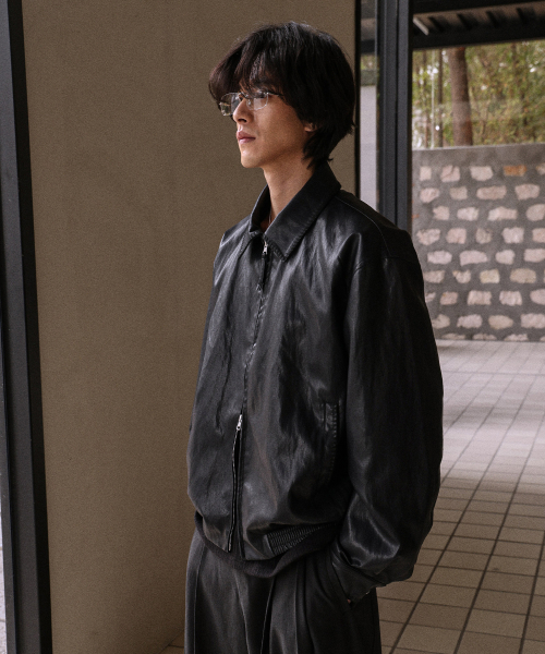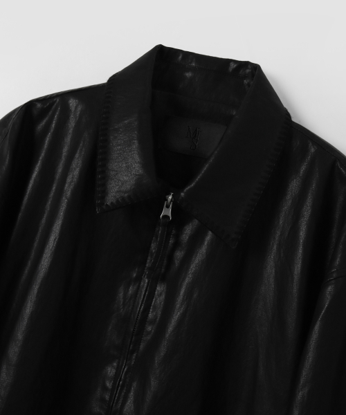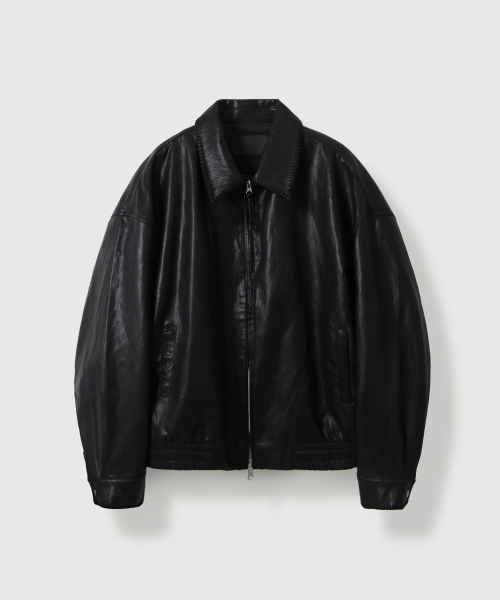 스티치 베지터블 레더 자켓_Black