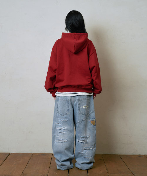 엠보 그래픽 후드티셔츠 레드