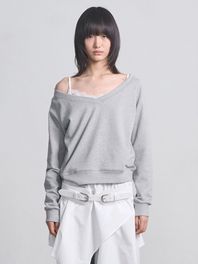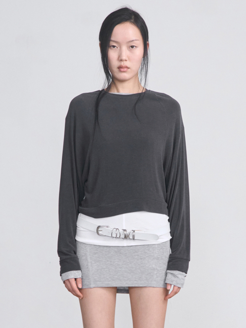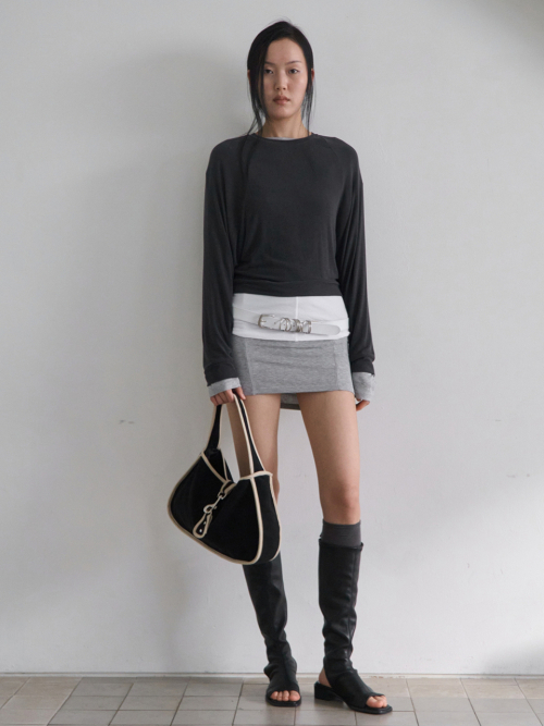 Stitch Boat Neck Top _ Gray