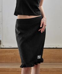 Flower Frill midi Skirt, BLACK