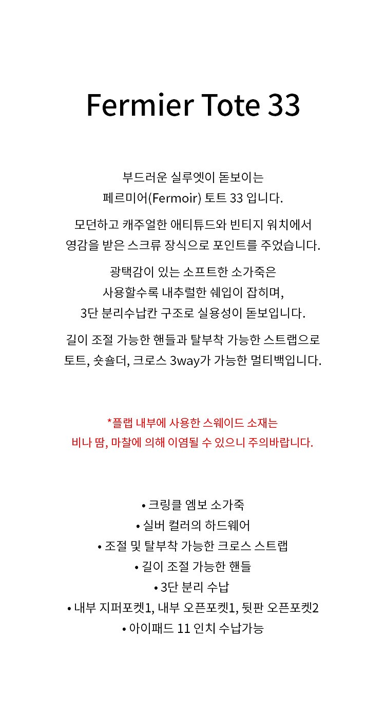 * 소재:천연가죽(소) /폴리에스터 80% 면 20%(안감)