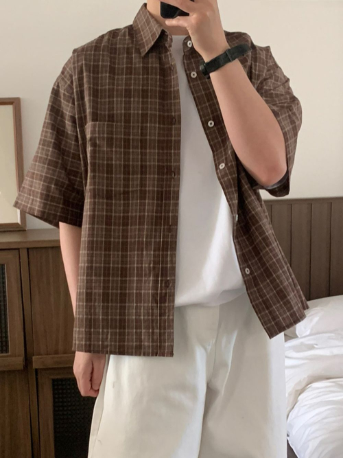 더 시티 체크 반팔 셔츠 (파스텔 브라운)