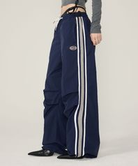 (UX)THREE LINE PARACHUTE WIDE PANTS NAVY