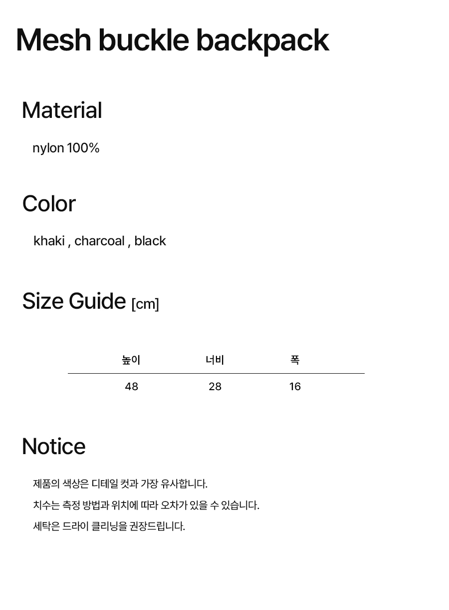 NOI1819 메시 버클 백팩 (차콜)