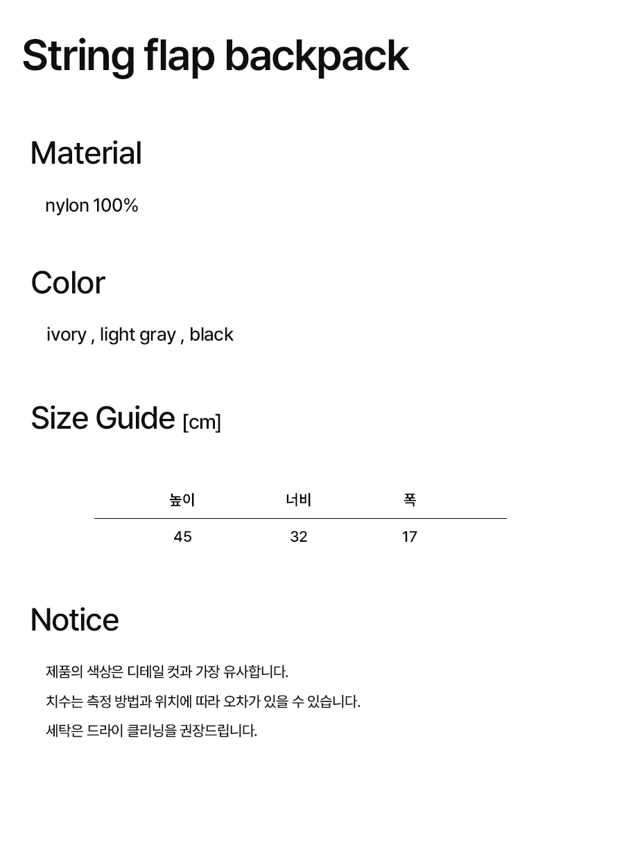 NOI1830 스트링 플랩 백팩 (아이보리)