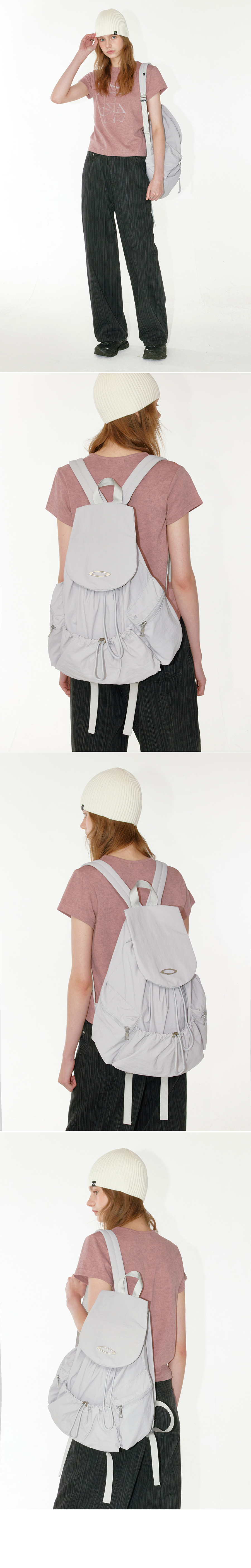 NOI1831 스트링 플랩 백팩 (라이트그레이)
