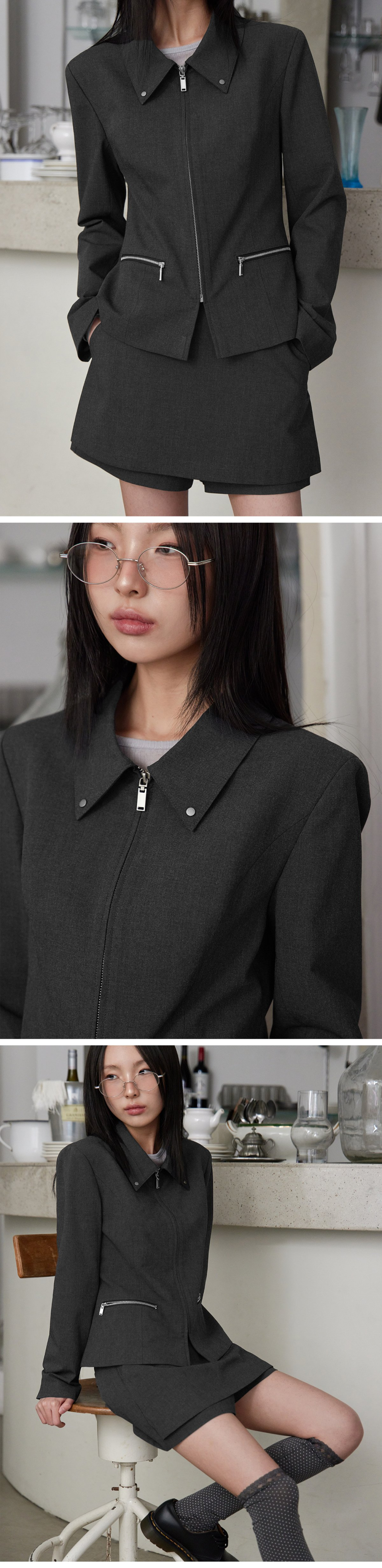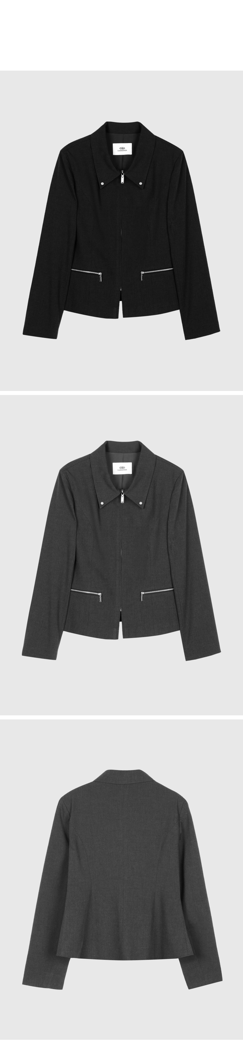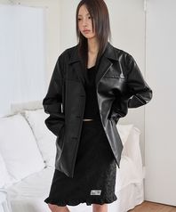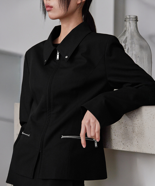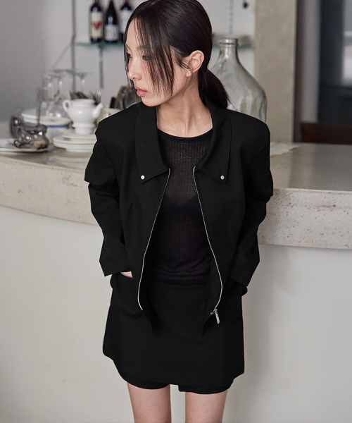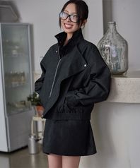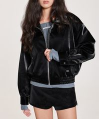 VELVET LEATHER ZIP-UP BLOUSON JACKET, BLACK