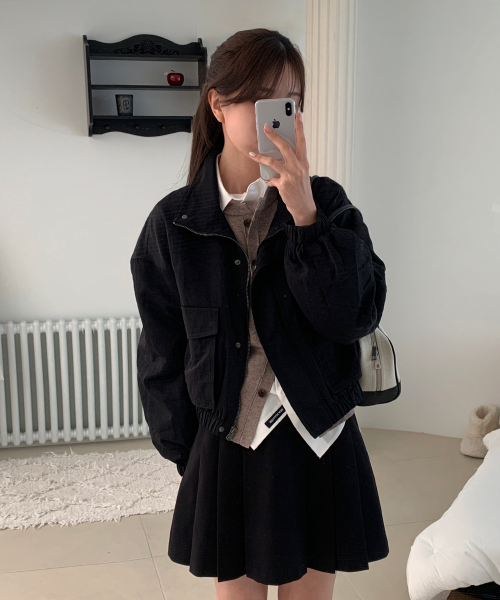[알로하 PICK] 빅포켓 세미 크롭 자켓 [BLACK] / GF1LJP509