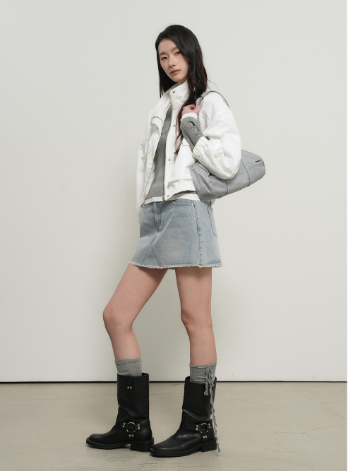 로우라이즈 컷팅 데님 미니스커트 [LIGHT BLUE] / WBE3L13504