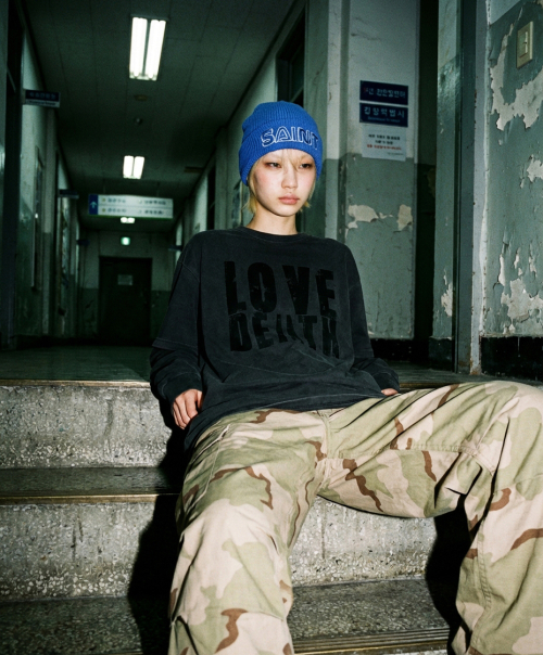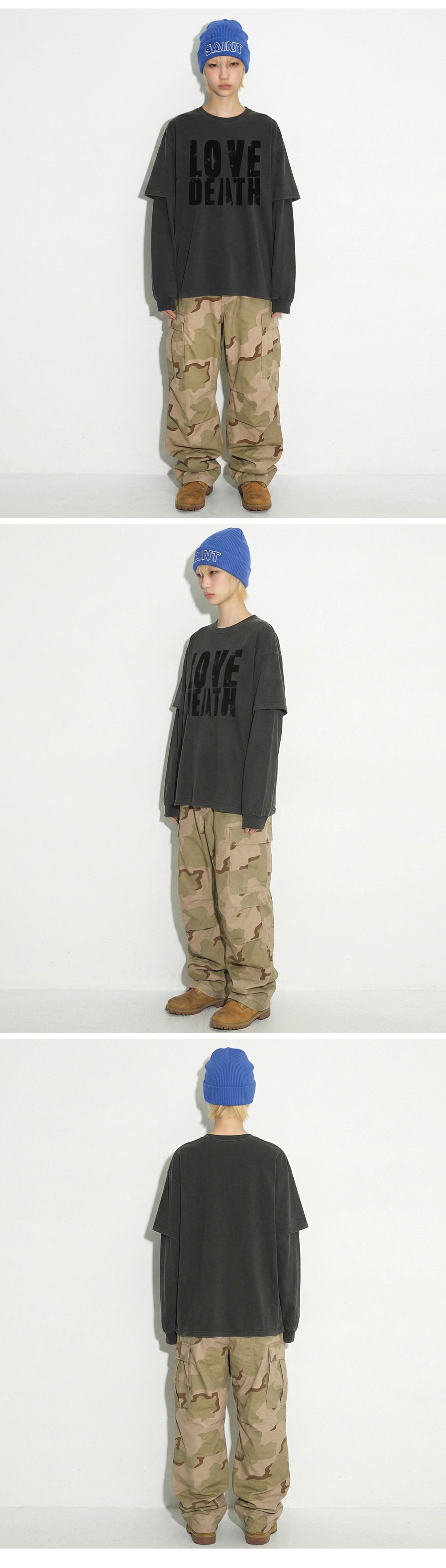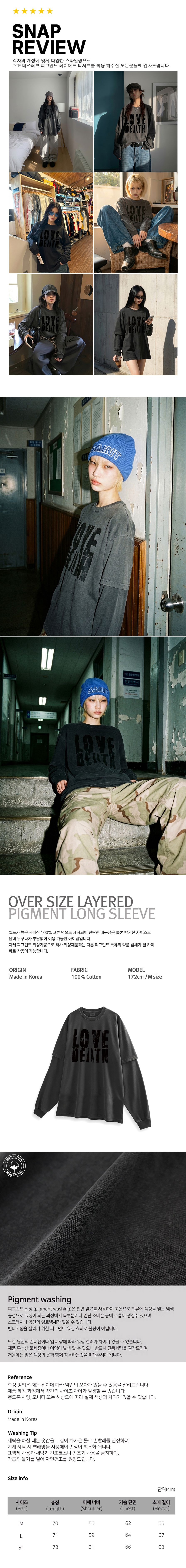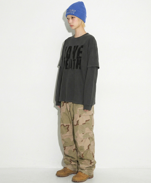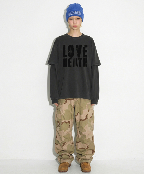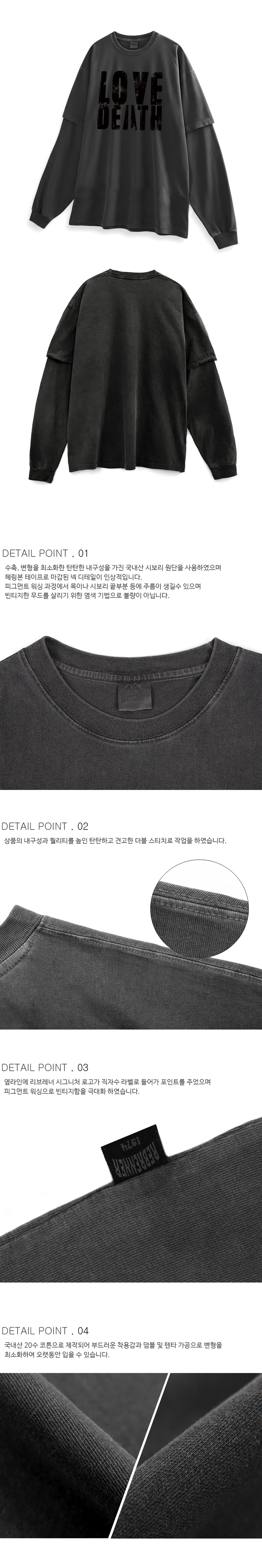 DTF 데쓰러브 피그먼트 레이어드 티셔츠 차콜