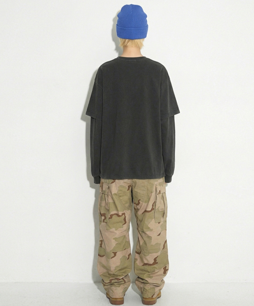 오버핏 피그먼트 레이어드 티셔츠 차콜