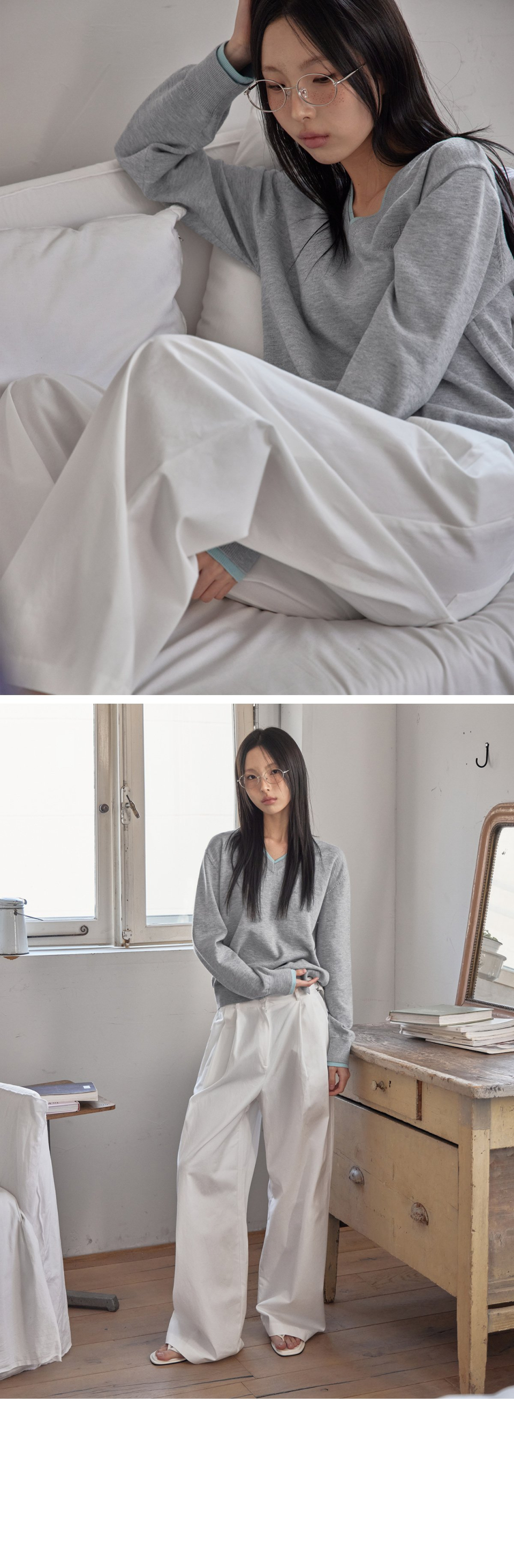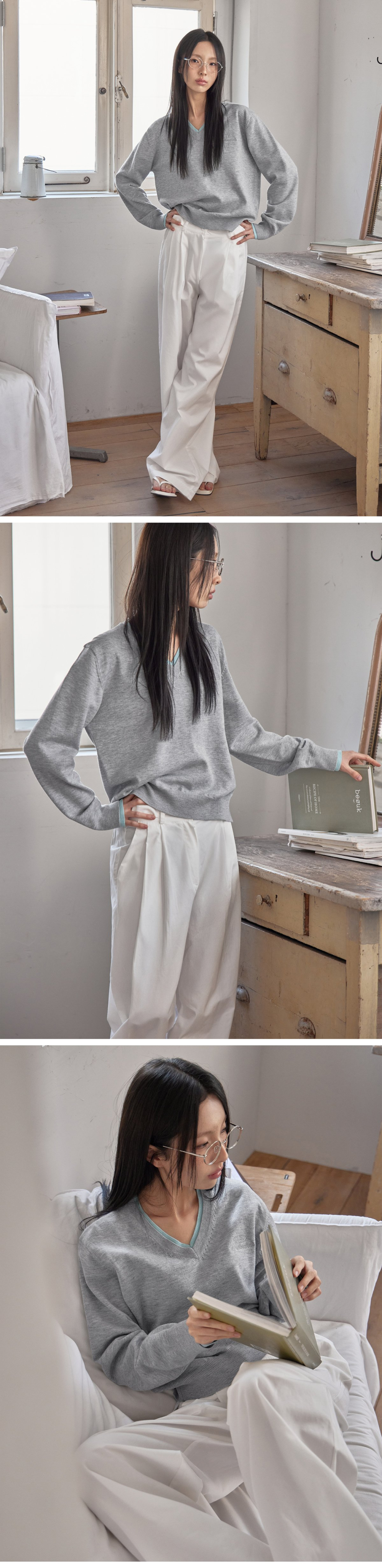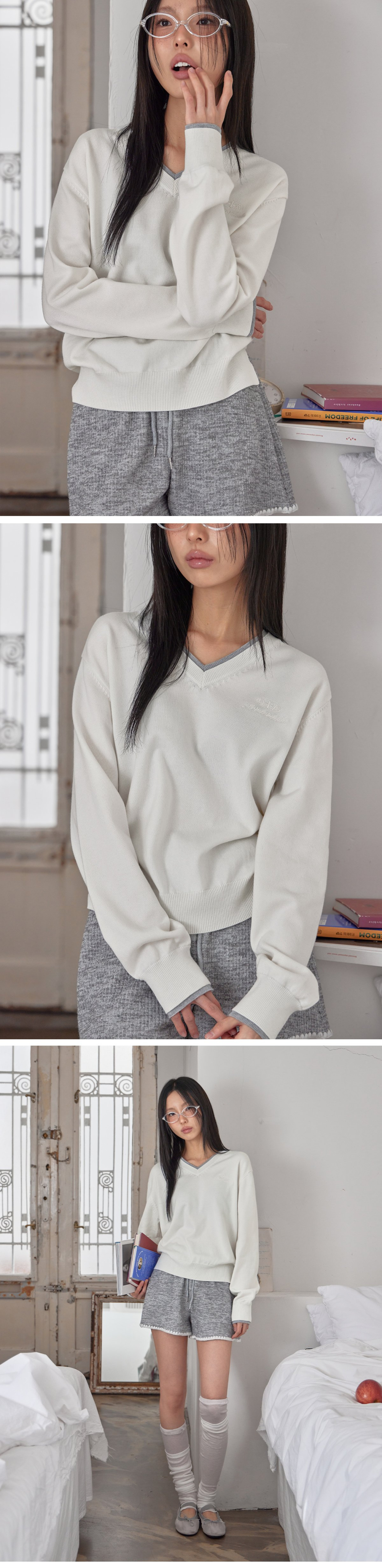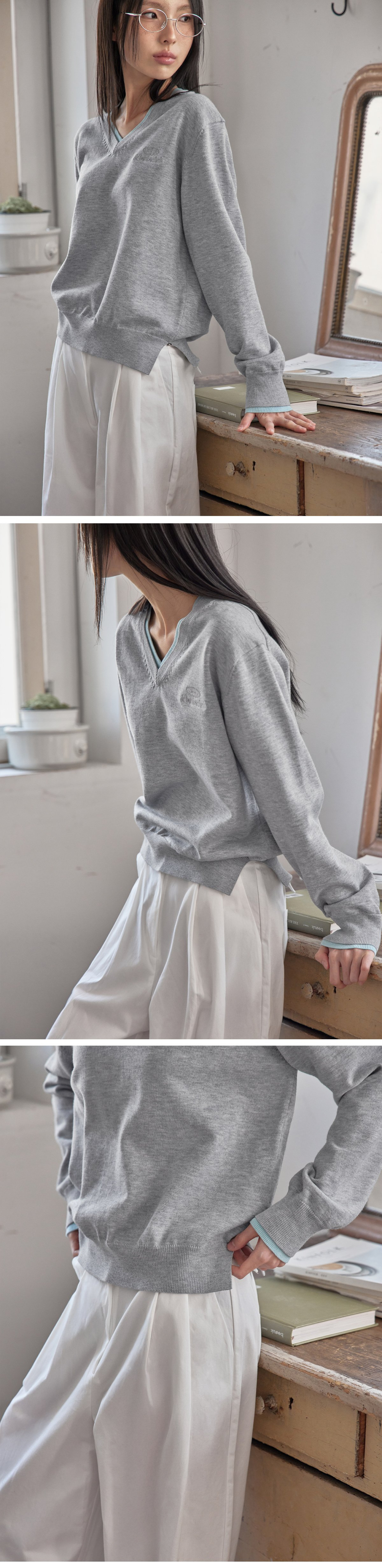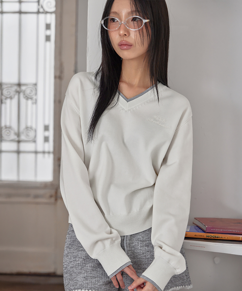 COTTON&WOOL OVERFIT V-NECK KNIT (T-7192)