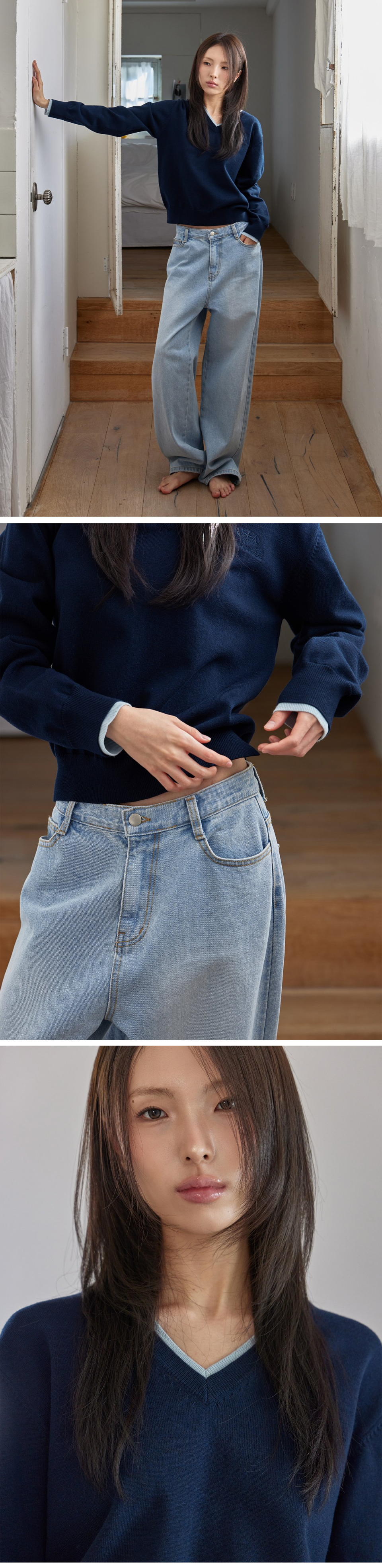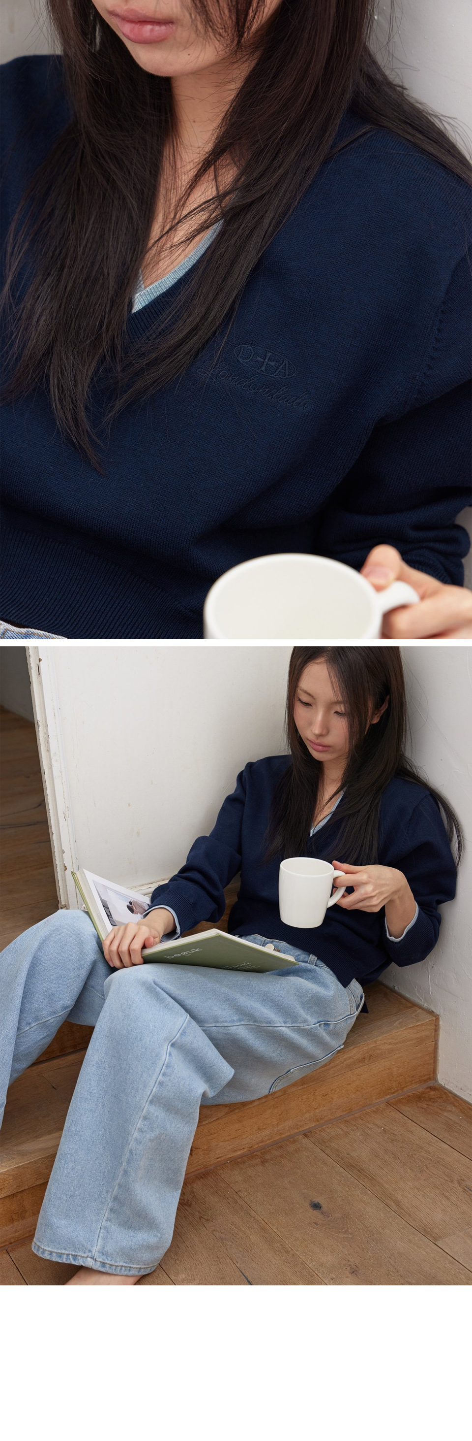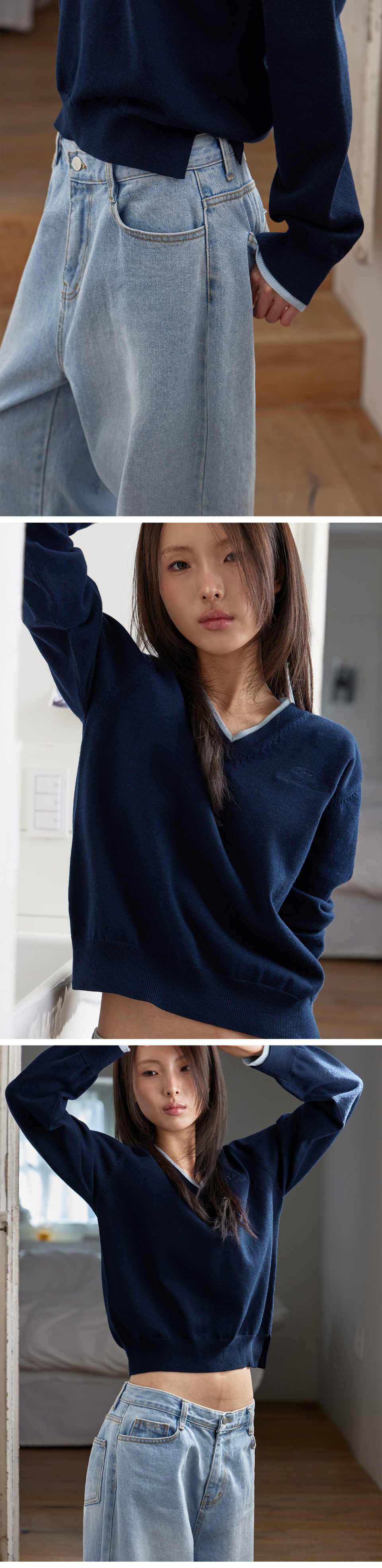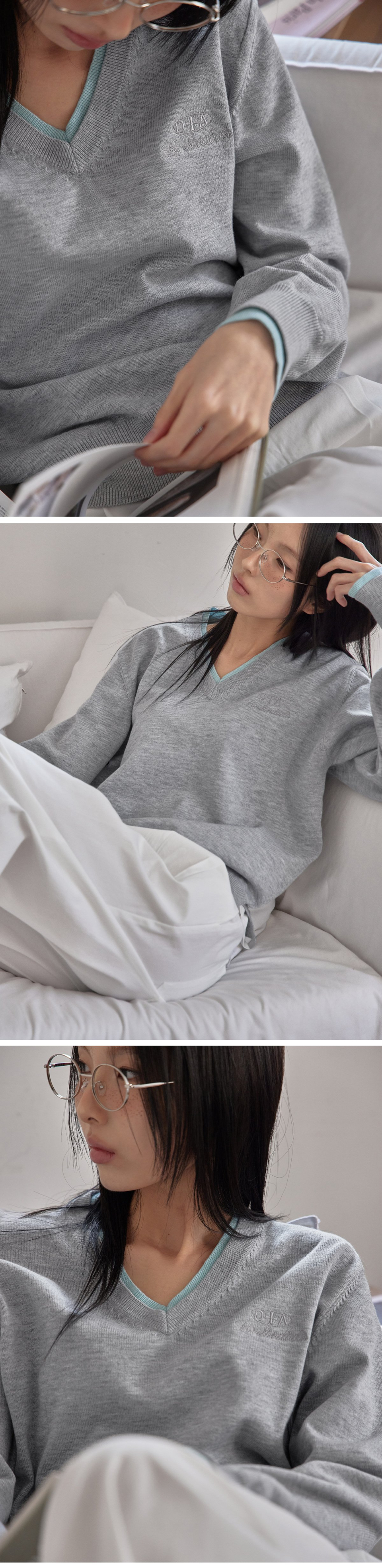 COTTON&WOOL OVERFIT V-NECK KNIT (T-7192)