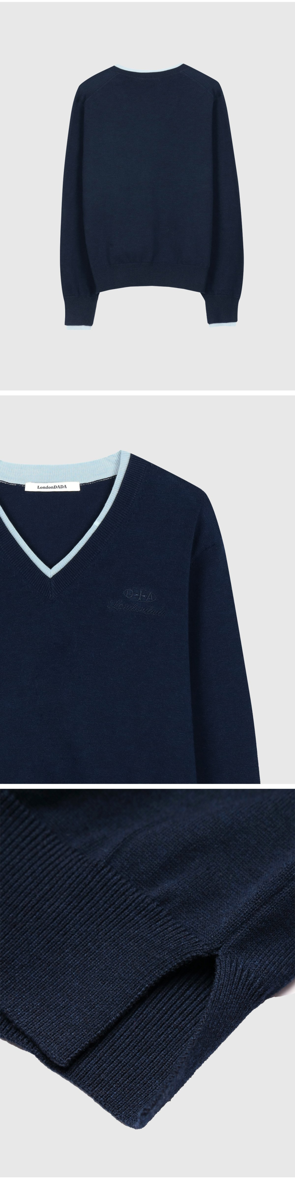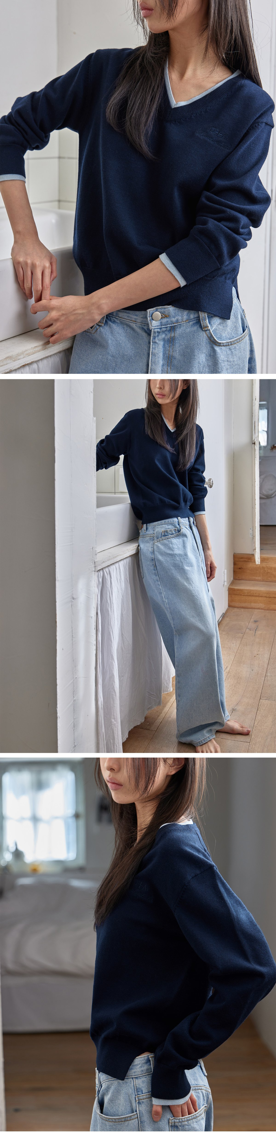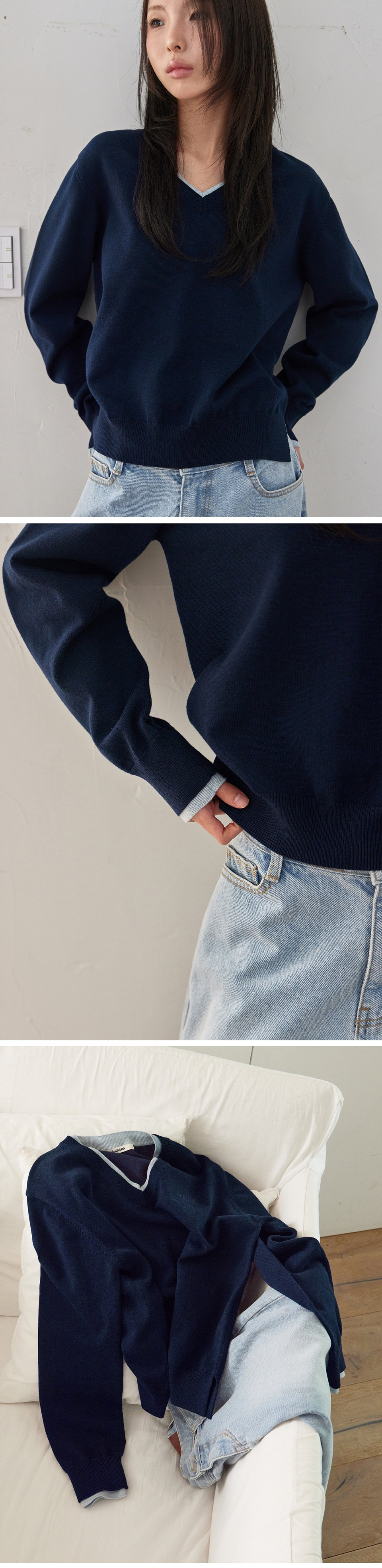 V-Neck Layered Pullover, NAVY