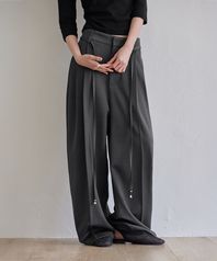 Curved Over Pintuck Slacks, CHARCOAL