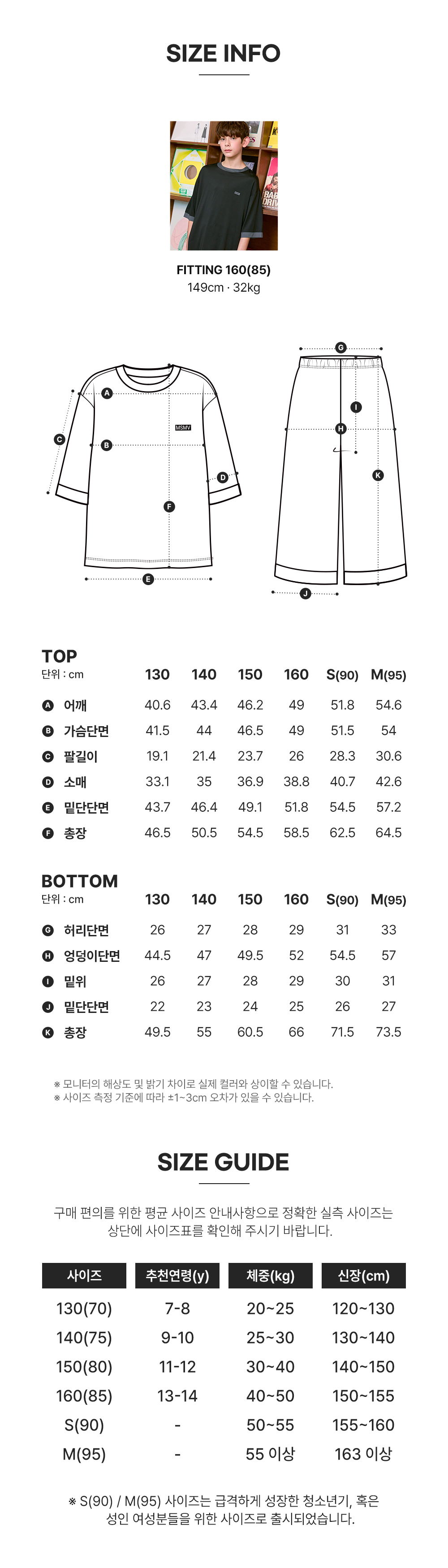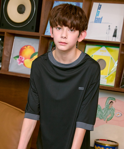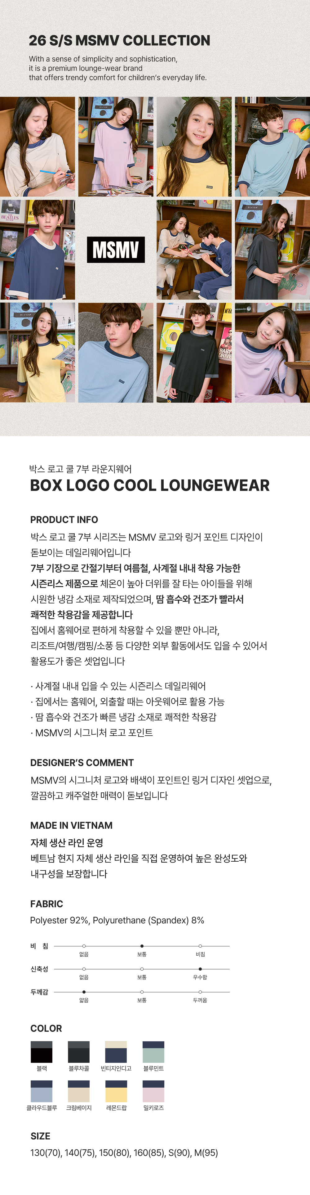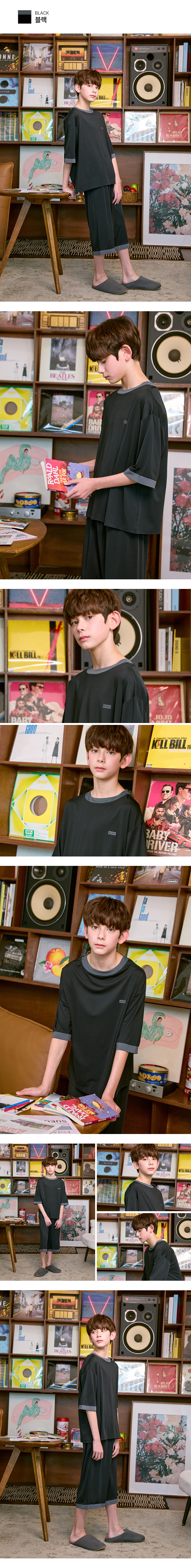 MSMV 쿨 냉감 블랙 아동 주니어 키즈 잠옷 내의 실내복 링거 7부 세트