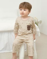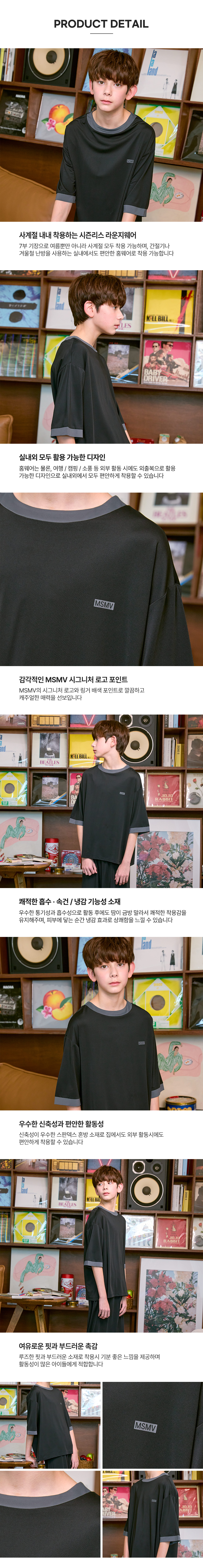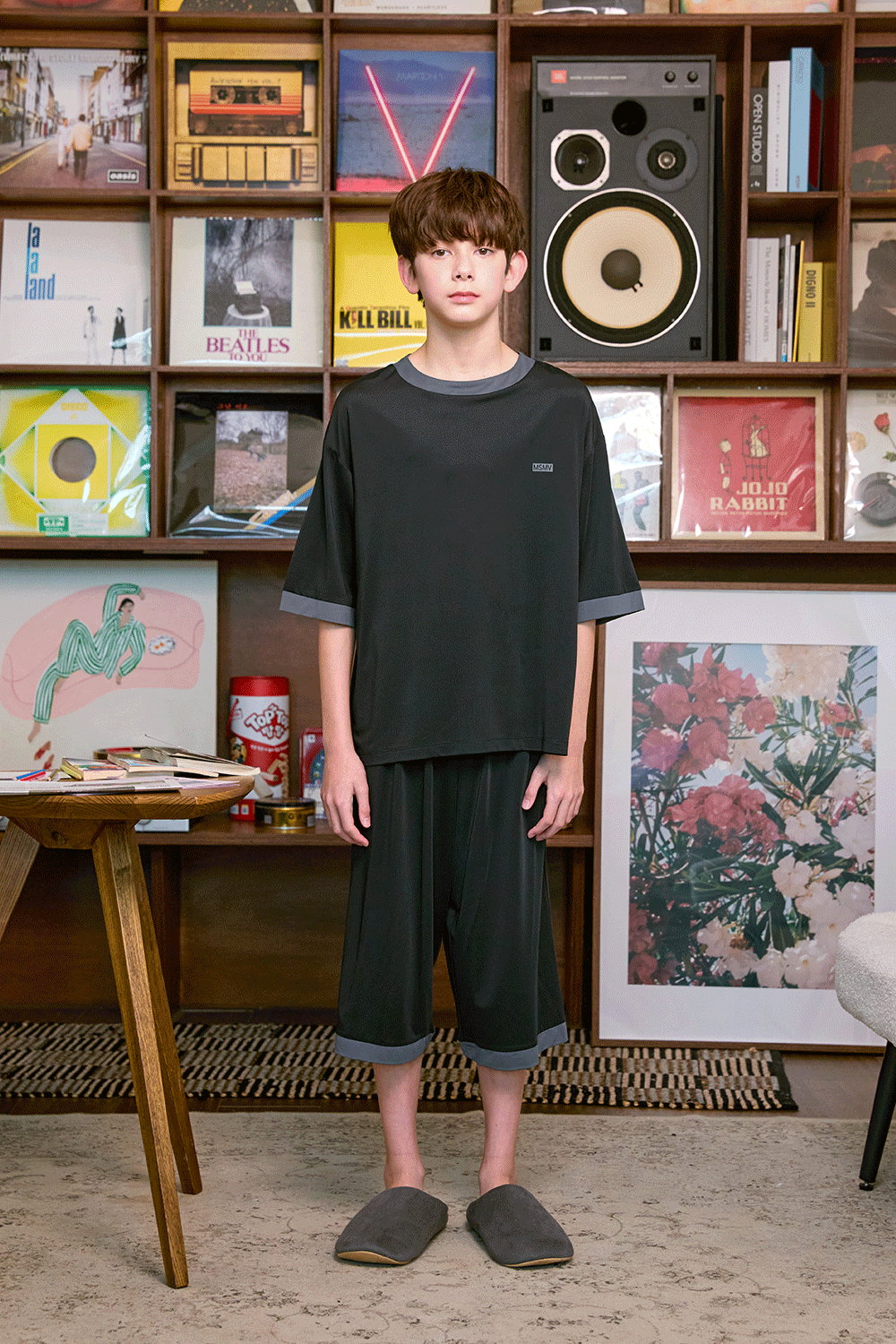 MSMV 쿨 냉감 블랙그레이ST 아동 주니어 키즈 잠옷 내의 실내복 링거 7부 세트