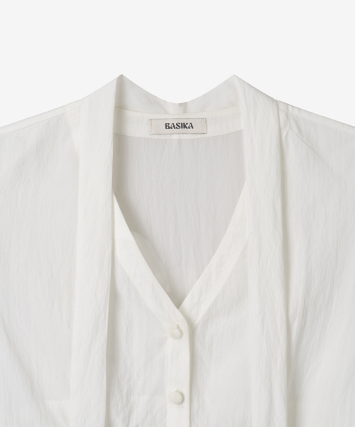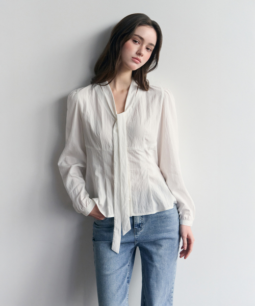 셔링 타이 블라우스_아이보리