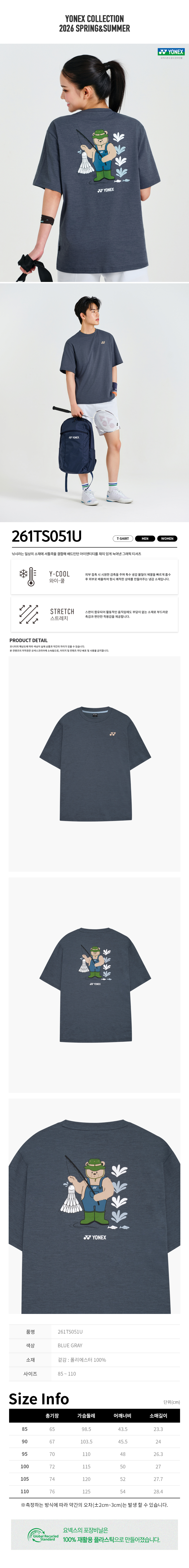 261TS051U 블루그레이 남녀공용 곰돌이 낚시 그래픽 반팔 티셔츠
