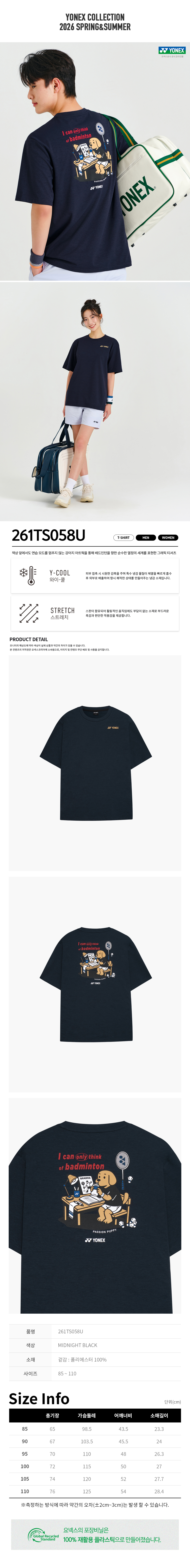 261TS058U 미드나잇 블랙 남녀공용 강아지 그래픽 반팔 티셔츠