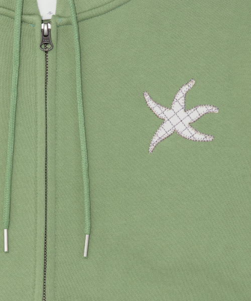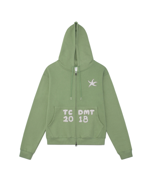 TCM logo applique hooded zip-up (green)