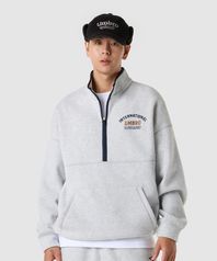플러스플리스 레터링 하프집업 라이트 그레이 UQ423CFSN1