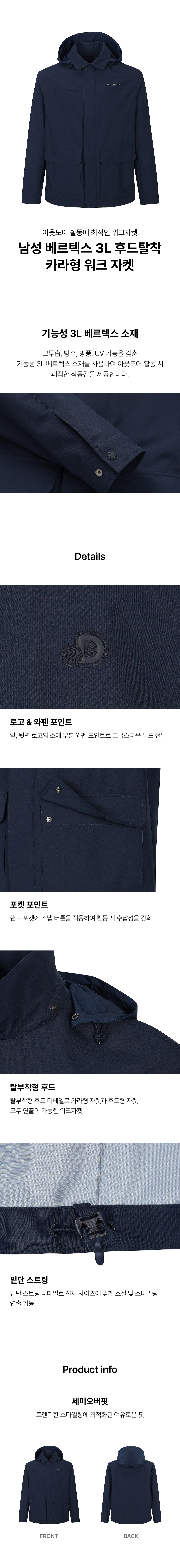 남성 베르텍스 3L 후드탈착 카라형 워크 자켓 (D/NAVY)