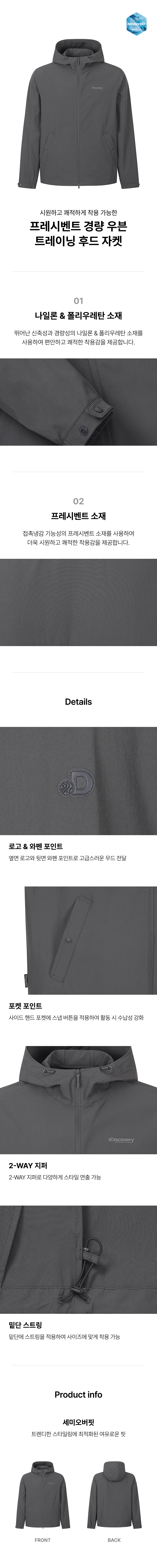 남성 프레시벤트 경량 우븐 트레이닝 후드 자켓 (D.GREY)