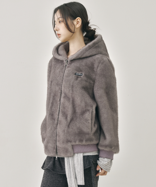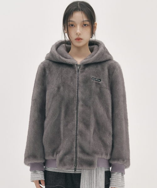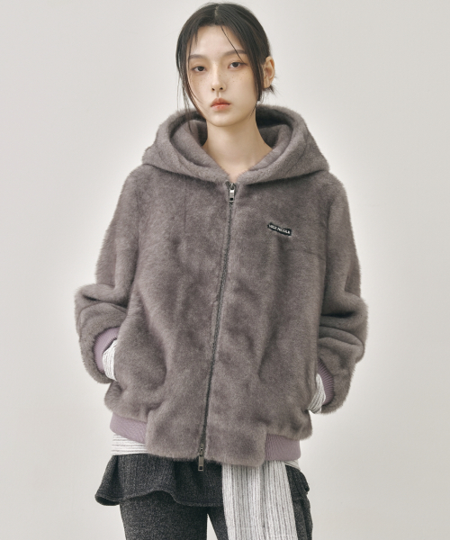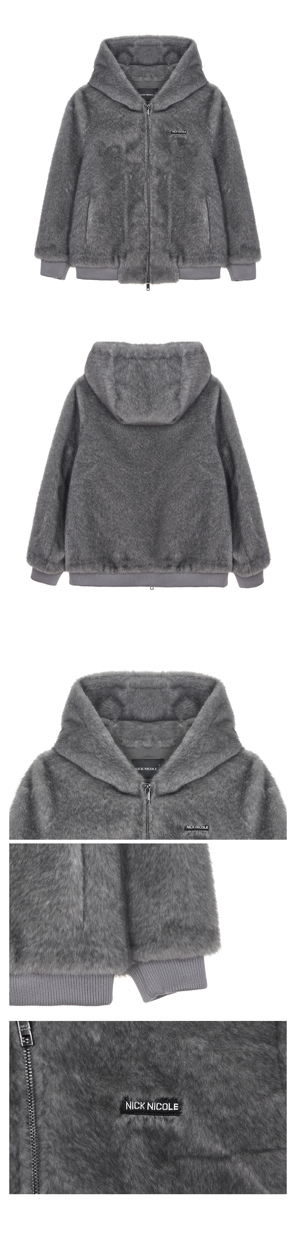LUXE FUR HOOD BOMBER JACKET_GRAY