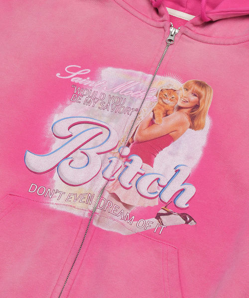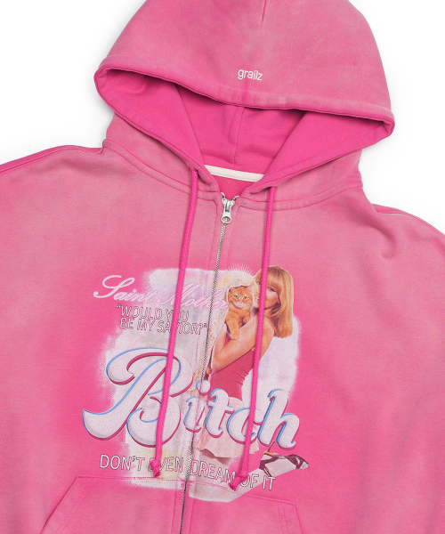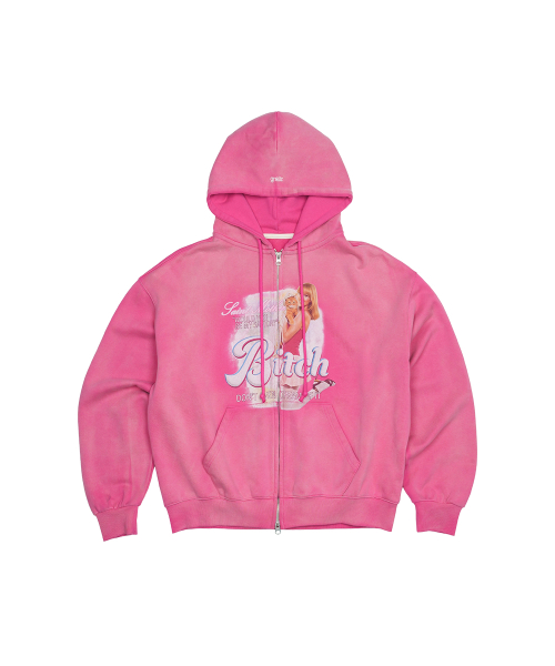 OVER GRAPHIC VINTAGE ZIP HOODIE [PINK]