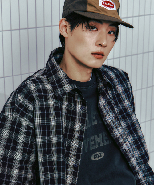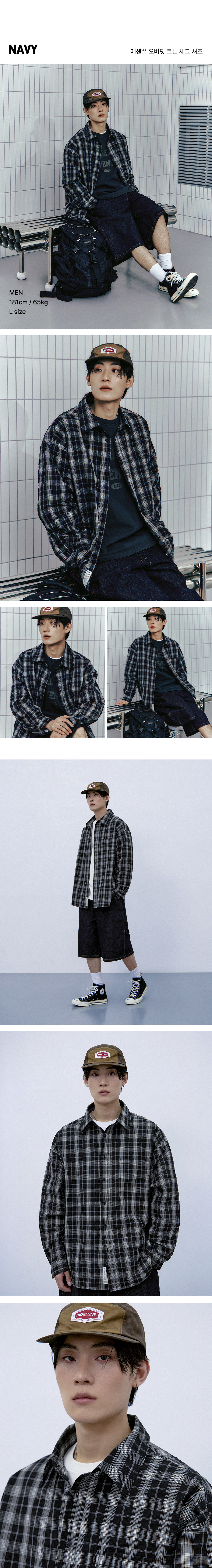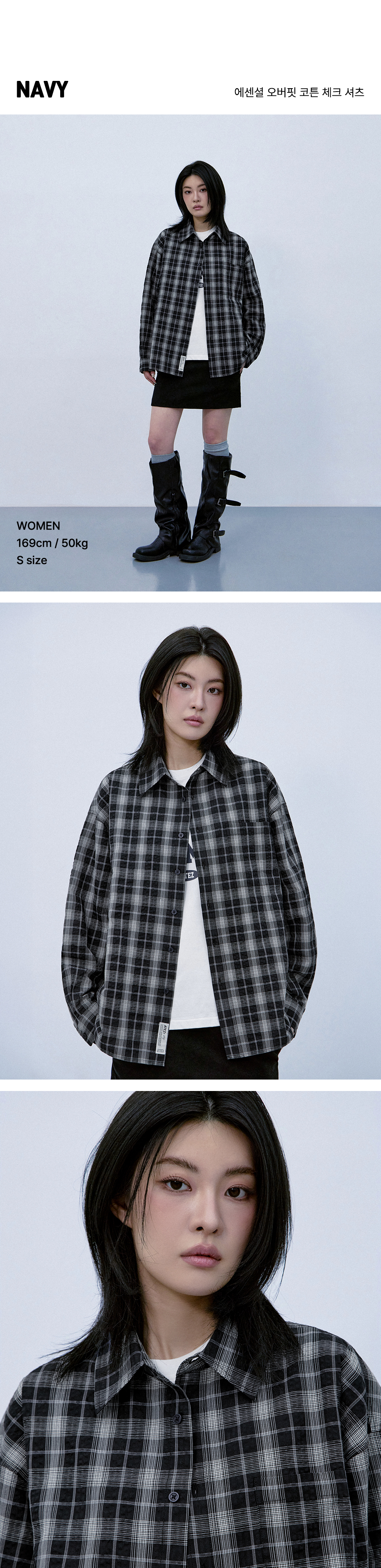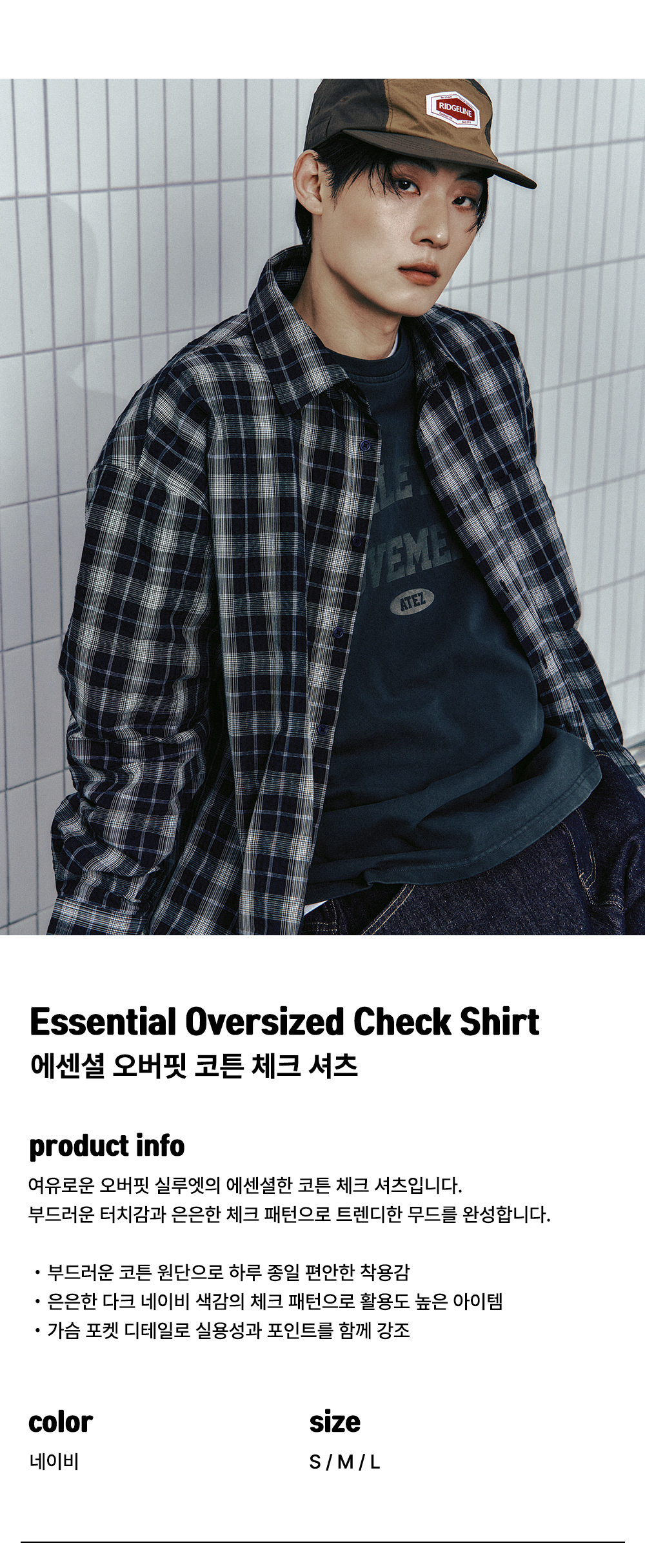 에센셜 오버핏 코튼 체크 셔츠 [네이비]