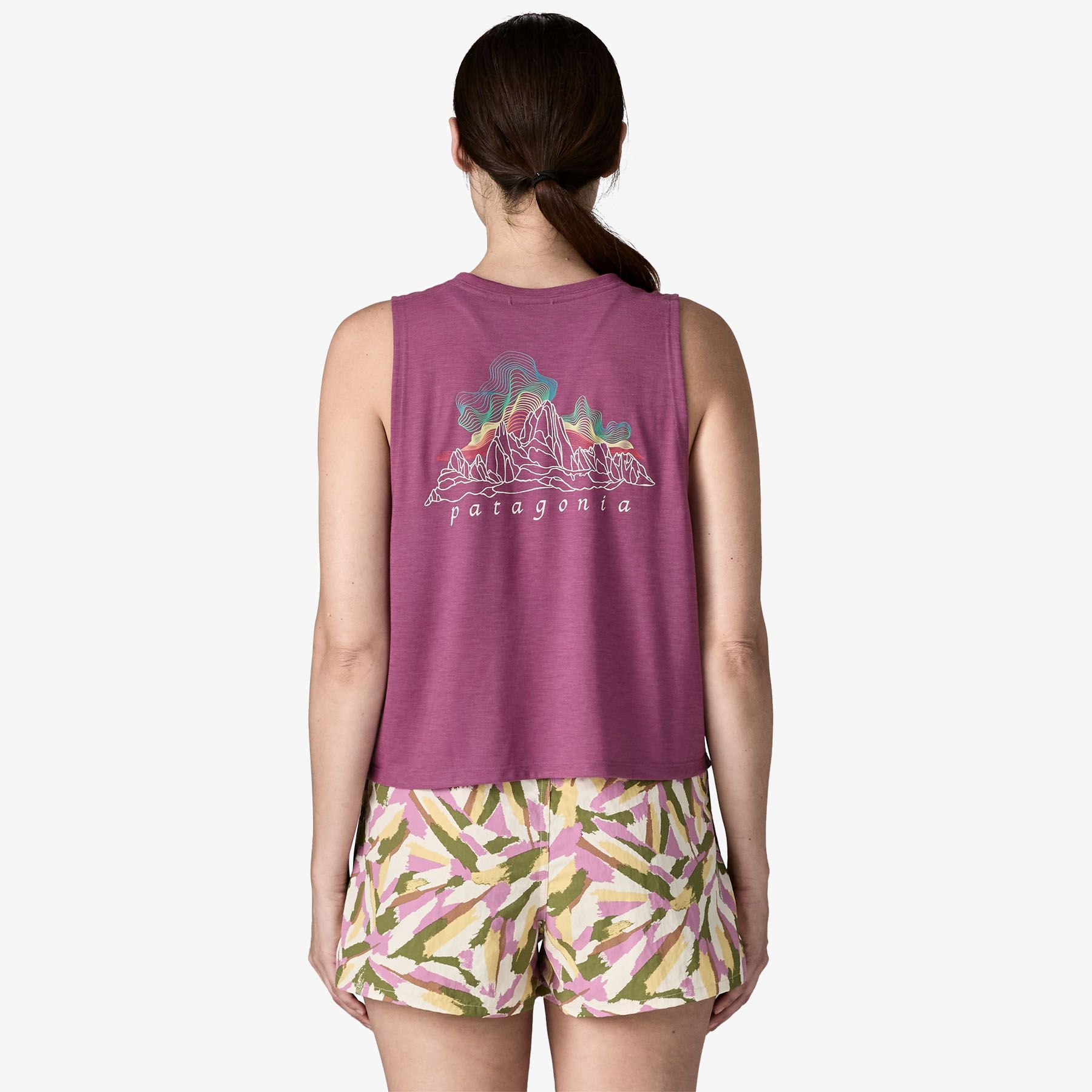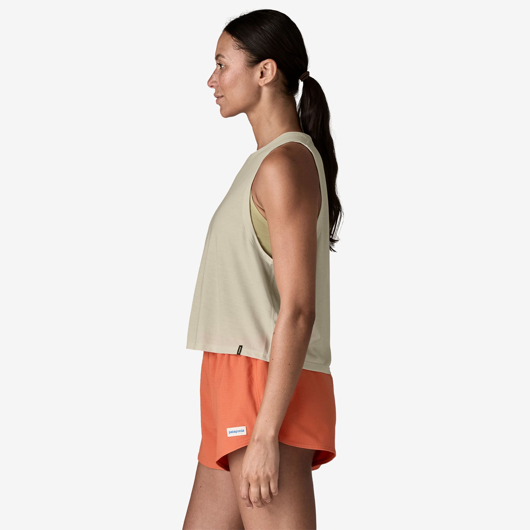 편안한 핏의 크롭 탱크 제품으로, 하이 라이즈 하의와 잘 어울립니다.