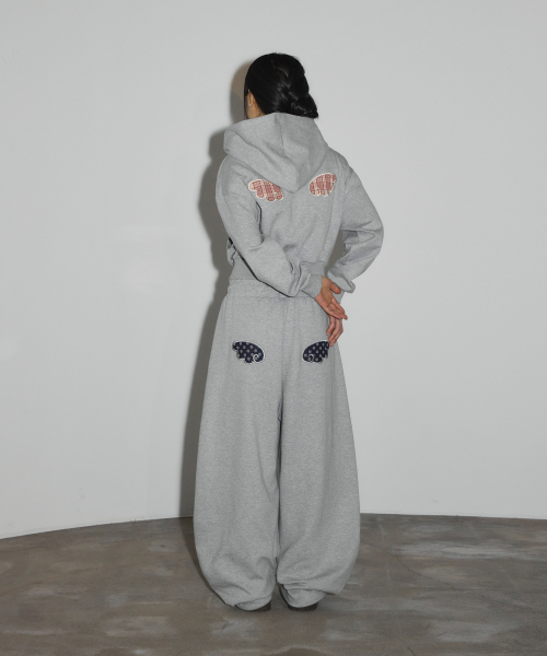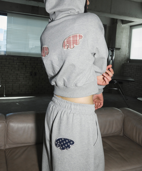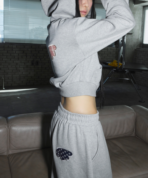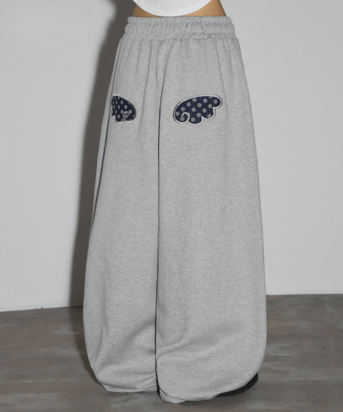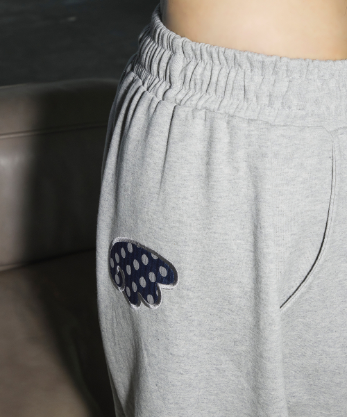 엔젤 아플리케 커브드 스웨트 팬츠[그레이]