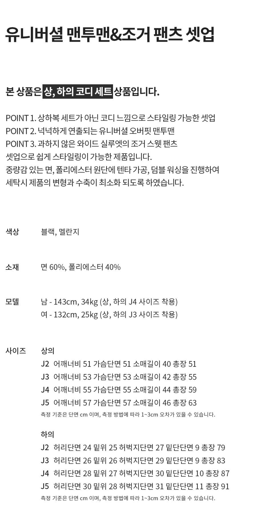[SET] 유니버셜 맨투맨&조거 팬츠 셋업 (2color)