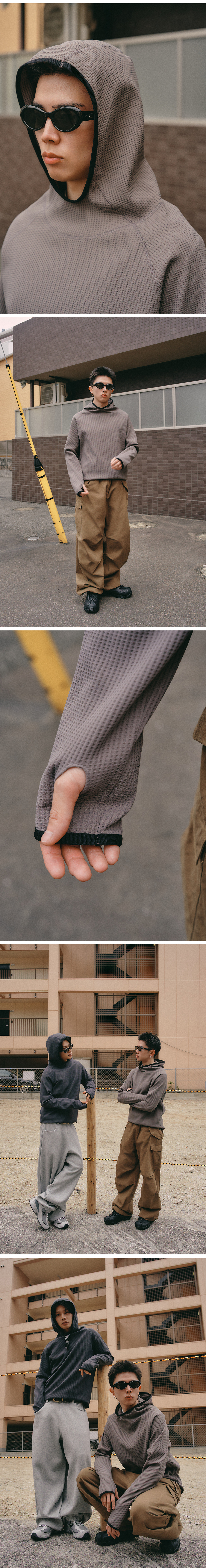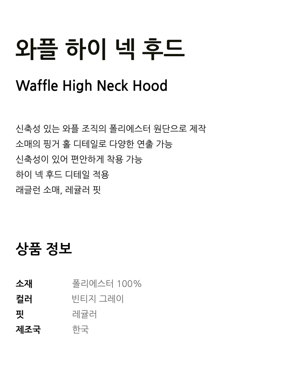 와플 하이 넥 후드 [빈티지 그레이]