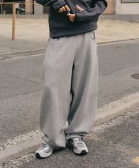 사이드 딥 턱 루프 커브드 스웨트 팬츠 [멜란지 그레이]