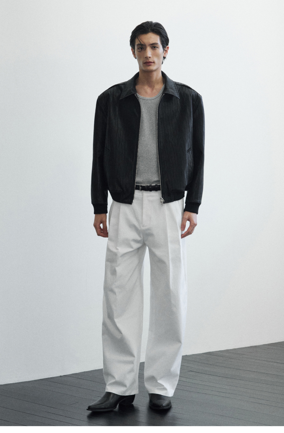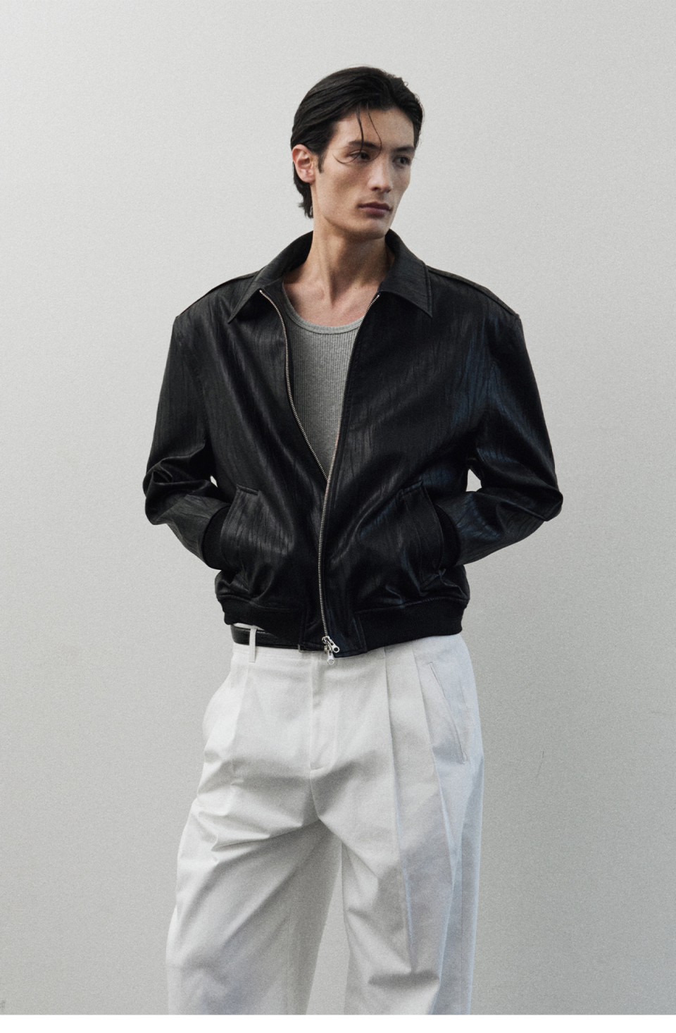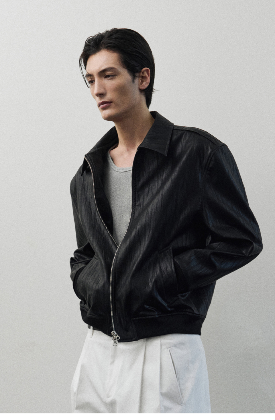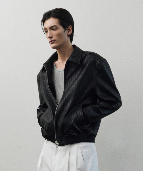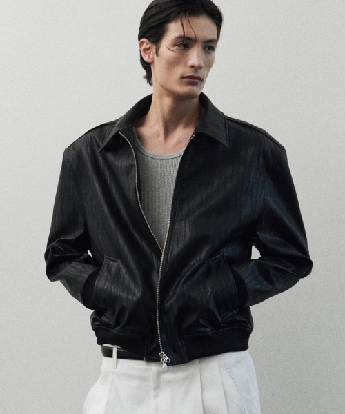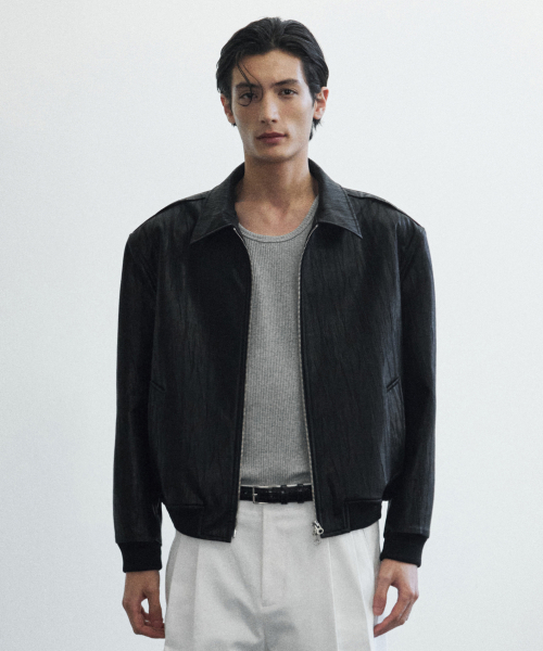 얼라인 크랙 레더 크롭 자켓 [BLACK]