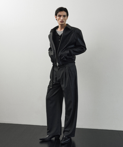 칸느 스트라이프 벨티드 슬랙스 [CHARCOAL GREY]