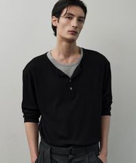 더블 레이어링 리브드 헨리넥 티셔츠 [BLACK]